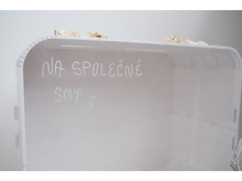 Bílý dřevený box na svatební dary a přání. Dopíši Vaše inicály a datum svatby.